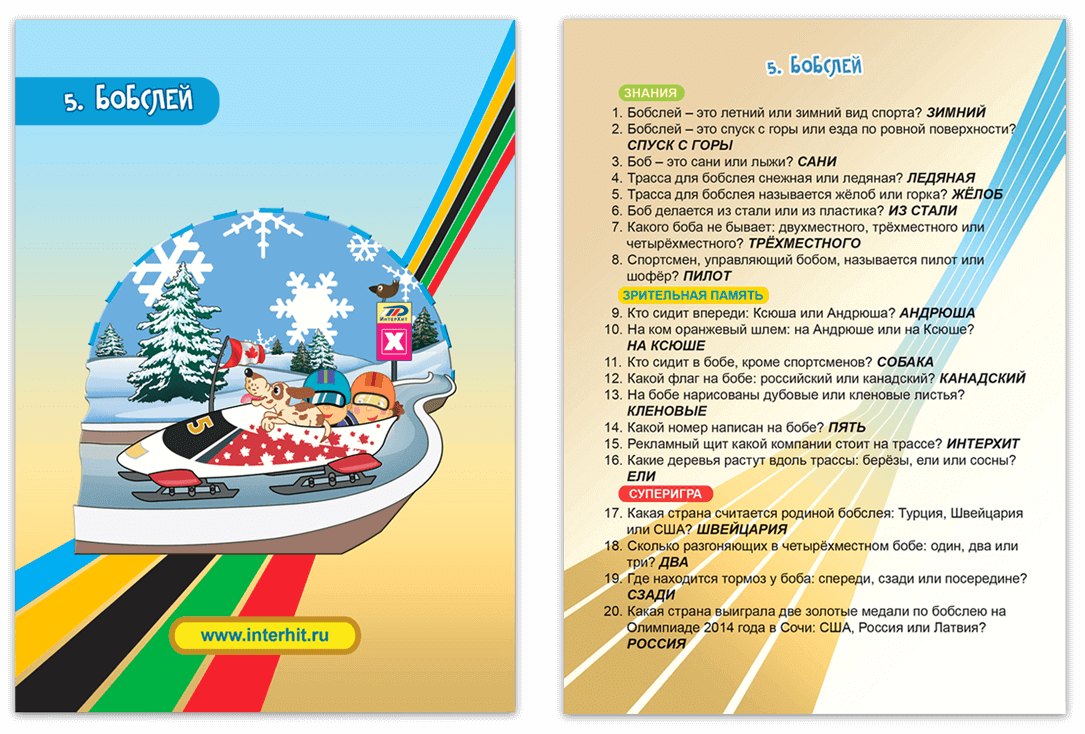 В коробке 800 вопросов и ответов про олимпиаду. Причём Вы покупаете одну игру, а получаете две!